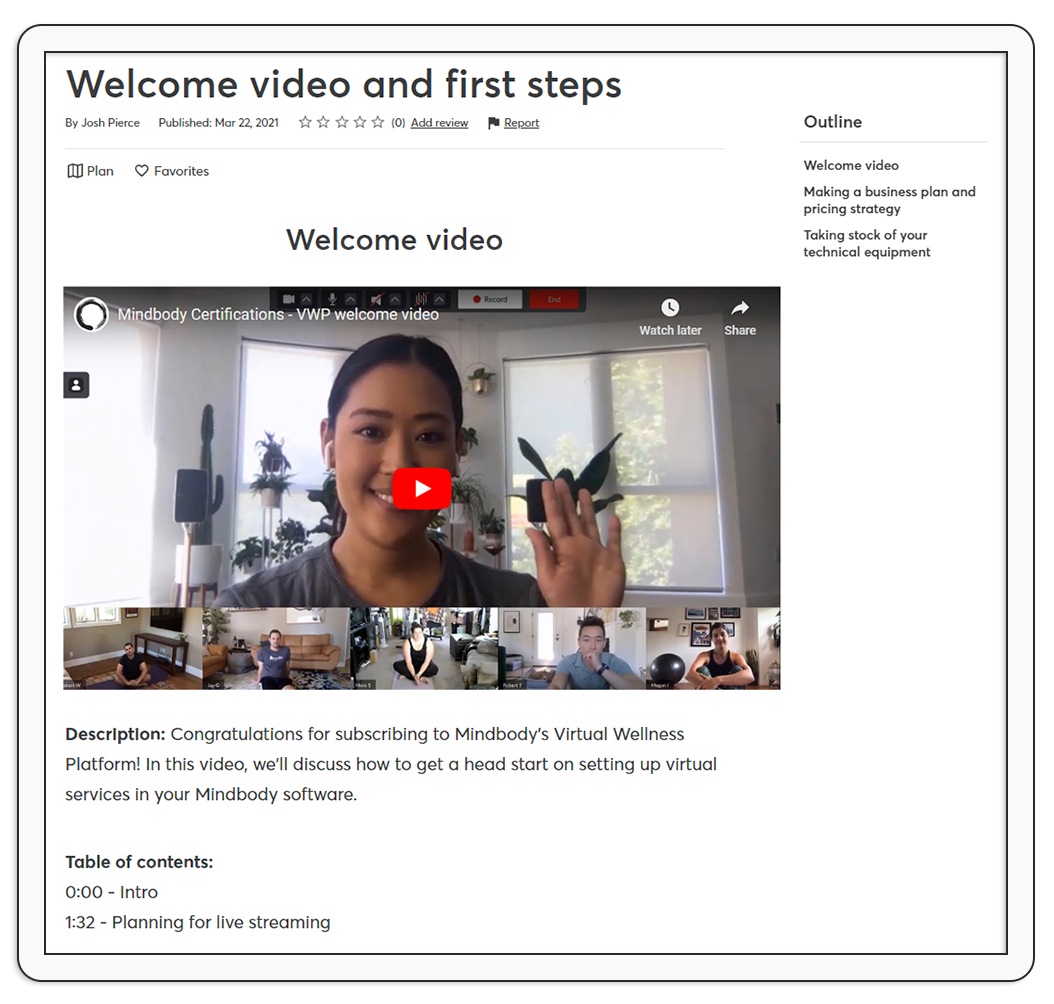 Virtual Wellness Platform learning experience